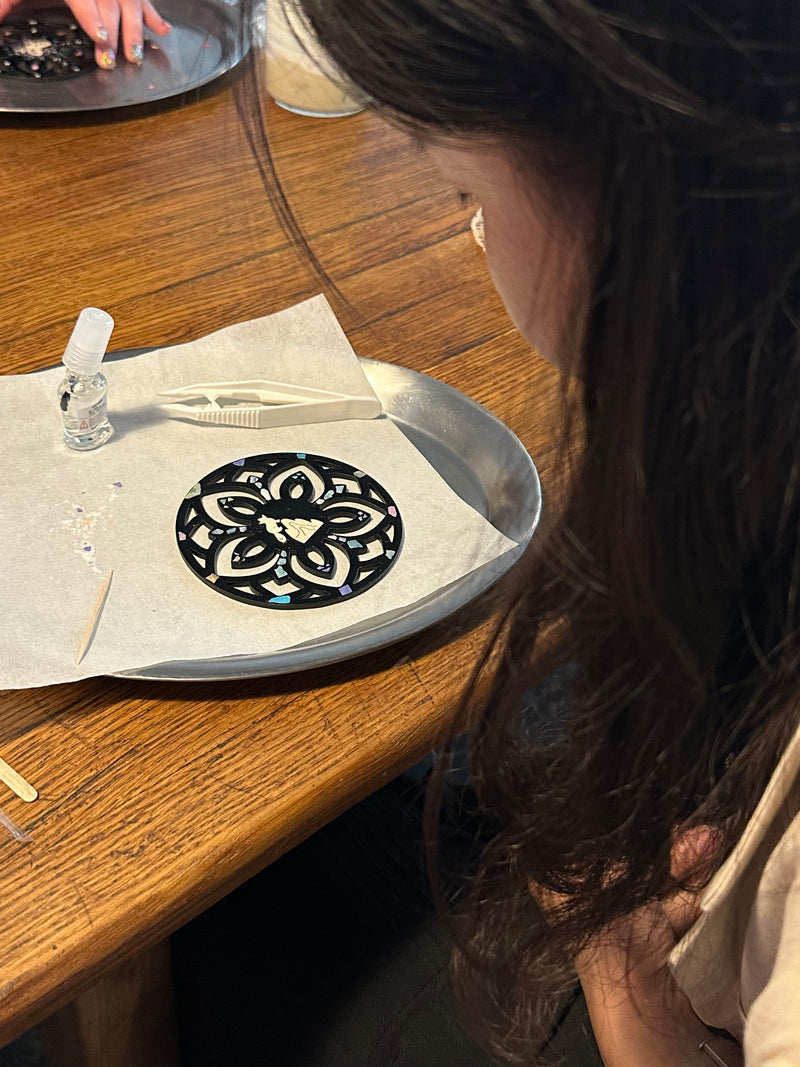 🎨 Make a shimmering coaster with Korean pearl inlay.