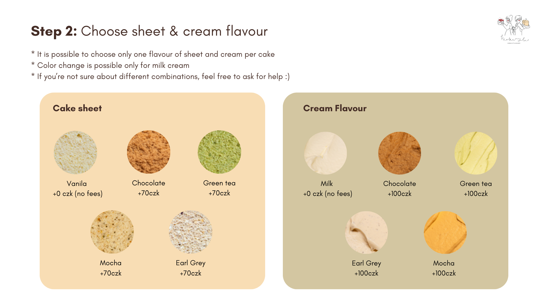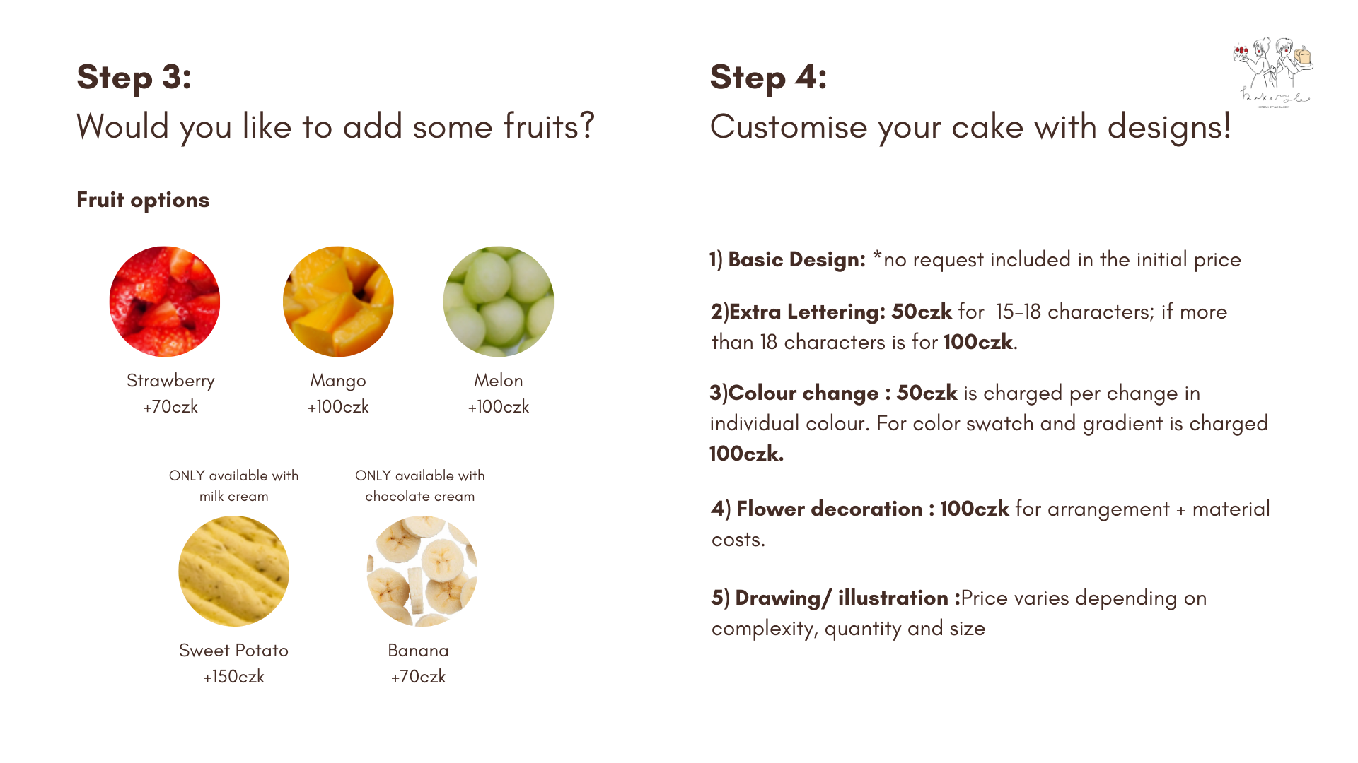Objednávky na poslední chvíli lze přijmout, ale mohou být omezené na příchutě, ovoce, čas vyzvednutí a požadavky na design. Je užitečné vyplnit formulář při objednávce.