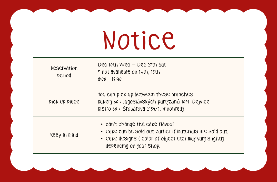 Our cake is made with heavy cream freshly every morning, hence it is important to store the cake in the fridge(2-8°C)as soon as possible. Please be aware the cream might melt a little if cake is in hotter temperatures for longer time(especially in the summer!, we recommend to bring an ice box. :)